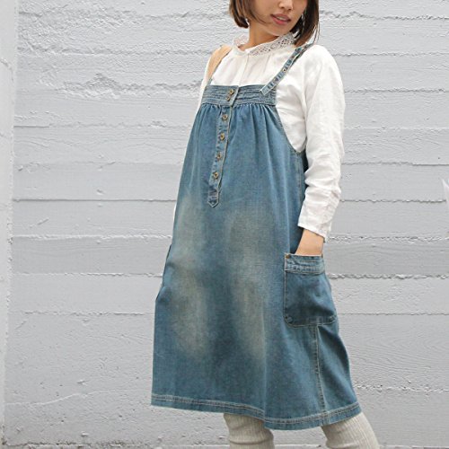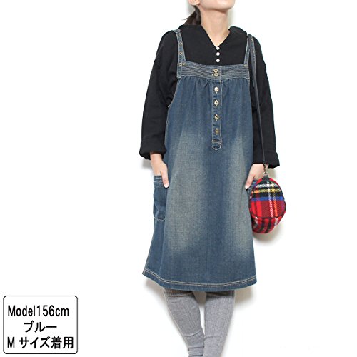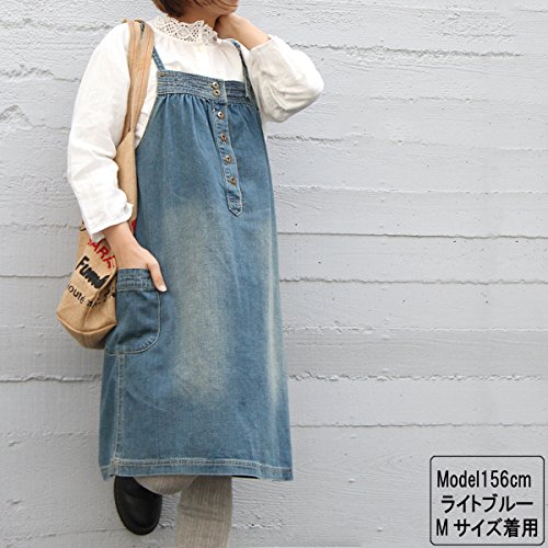 コットン100%のデニムワンピースです。 程よい厚みがあるのでインナーを変えるだけで1年中着まわせませ、シンプルなAラインのキャミソールデザインながら、自然な加工感があるので大人可愛く着こなして頂けます。 大きめのサイドポケットが着こなしのさりげないポイントに。 アジャスターで肩紐の長さが調節できりので、気分や身長に合わせて着丈を変えられるのも嬉しいポイントです。 大人らしくこなれ感のあるブルー、ナチュラルに着こなせるブルー。SSサイズからLLサイズまでのサイズ展開なのでお好みのサイズを見つけて下さい。 【サイズ】 (SS) 着丈70cm バスト82cm 裾幅61cm 肩紐12~21cm (S) 着丈74cm バスト86cm 裾幅63cm 肩紐12~21cm (M) 着丈78cm バスト90cm 裾幅65cm 肩紐14~22cm (L) 着丈81cm バスト100cm 裾幅70cm 肩紐14~22cm (LL) 着丈84cm バスト110cm 裾幅75cm 肩紐14~22cm