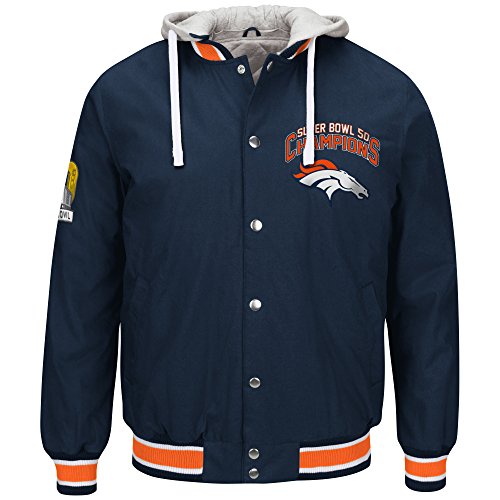 Denver Broncos NFLメンズSuper Bowl 50 Champions Commemorative Cotton Canvasジャケット取り外し可能フード付き XLarge