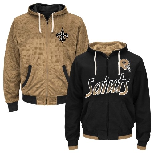 このジャケットは主にゴールドと黒のハイライト。前面と背面の両方が適用されるようにSAINTSヘルメットの左上。また「聖人」を呪文に大きく前面に。