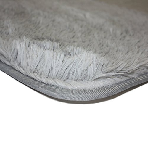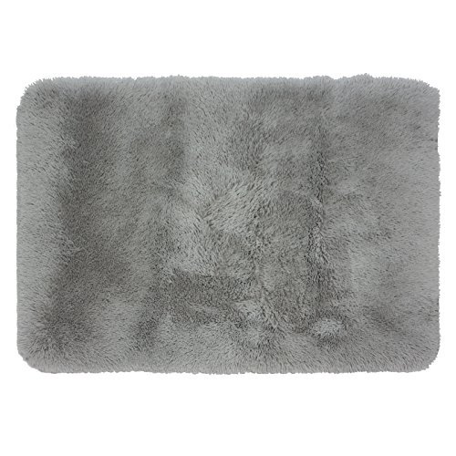 Bright Grey Shag 31x44 with 1.5" pile height. Easy care, durable, and non-skid backing. Soft underfoot with thick lush pile.