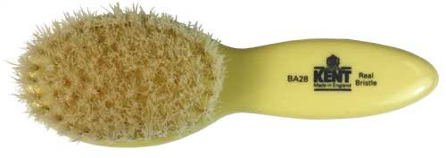 大変柔らかく長いブリッスルのヘアブラシです。 生まれてからすぐに使うことができます。 やさしいクリーム色がベビーにぴったりです。 KENTブラシ社のブラシは 100% 天然の豚毛 (bristle - ブリッスル ) を使用しています。 ブリッスルとは、中国・インドで放牧されている猪 (boar) から採集される太くて長い毛のことです。 油性分が豊富で弾力性に富んでいるため、ヘアブラシや洋服ブラシ、歯ブラシに使用すると優れた効果を発揮します。 KENTブラシ社のブラシに印されている「Real Bristle」とは、100% 天然のブリッスルのみを使用し、ナイロンなどの化学繊維は一切混合されていないことを表しています。 また、柄の部分に使用されている木材は、英国森林委員会、オランダ森林協会から正式な認定を受けた森林のもので、伐採後はきちんと植林を行なっています。