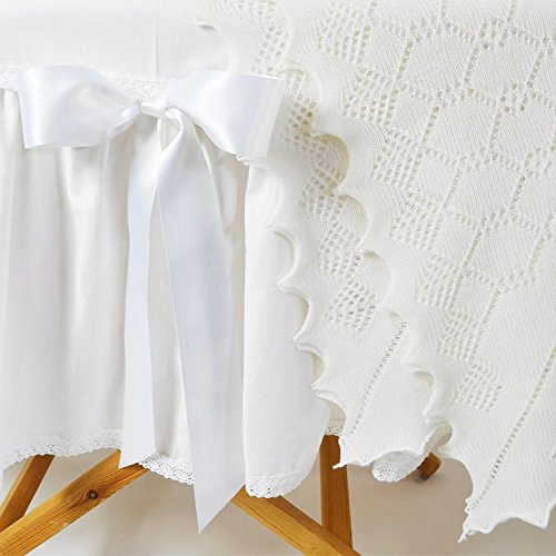 シャーロット王女誕生の際使用された豊かな肌触りのベビーショールです。 深いレースボーダーが美しさとエレンガントさを演出しています。 極上の柔らかさを持つウールが赤ちゃんを優しく包み込みます。 大切な方へ心からのギフトや、特別なお披露目などに最適なベビーショールです。