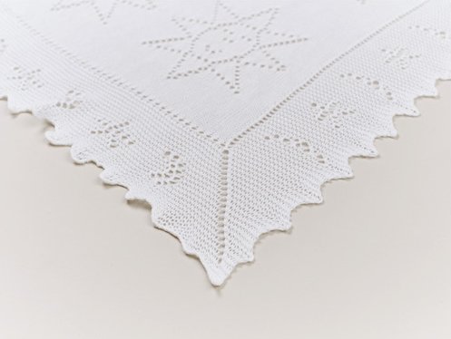 1912年創業の最高級レースのニットを提供している英国ノッティンガムのニットブランド、G.H.HURT & SONのベビーライン。 上質な素材と繊細なレース編みが特徴♪ 全体にかわいいレースパターンをあしらった、ピュアホワイトのベビーショールです。 100%コットンを使用しており、フォーマルにも、日常使いのブランケットとしてもお使いいただけます。
