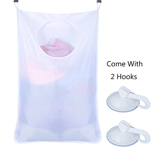 gadentドアHanging Laundry Hamper withステンレススチールフックとSuckerフック、ジッパー(ホワイト)