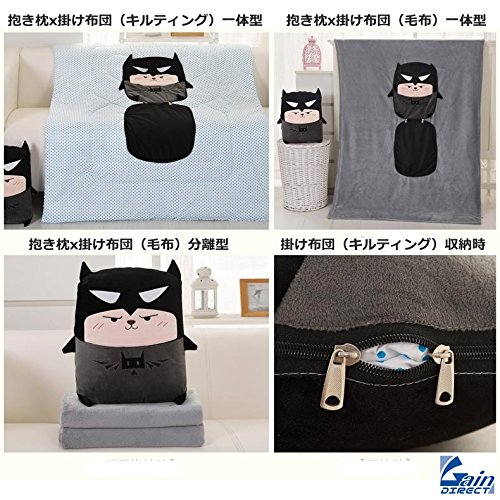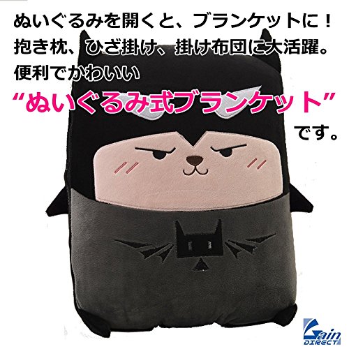 GAIN-DIRECT 車載 車内 車 用 クッション 兼 ブランケット ぬいぐるみ タイプ たためる ひざ掛け かわいい カーグッズ 冷房 冷え性 子供 保温 カワイイ キッズ 抱き枕 あにまる どうぶつ キャラクター おりたたみ ひざかけ 可愛い もこもこ ふわふわ あたたかい あったか あったかい 収納 手持ち 持ち運び アウトドア 掛け布団 お昼寝 まくら カバー くま 巾着 おまけ付き 【抱き枕 x 掛けふとん 毛布 (100cm×170cm) 一体型】 コウモリ ブラック 黒