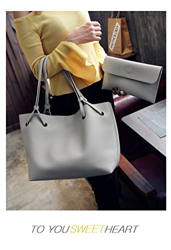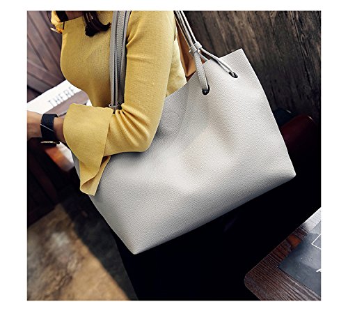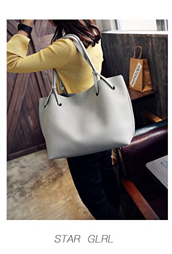 (ガラ-ボ) バッグ レザーバッグ かばん 鞄 2つセット 通勤 通学 就職活動 大人 きれいめ A4 入る 学生 (ライトグレー)
