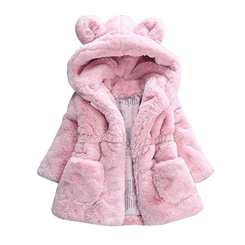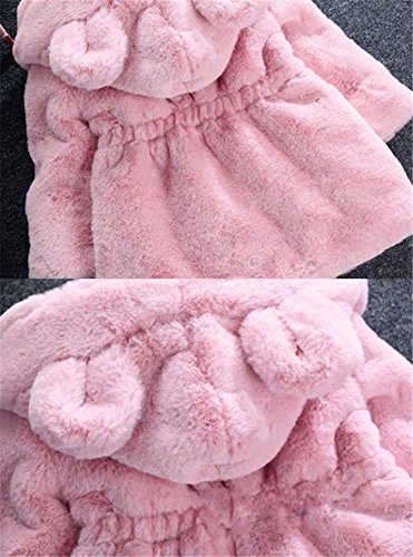 GALAXYONEうさぎ耳付き コート 女の子 新生児 ロングタイプ 子供服 無地 ぬいぐるみ 長袖 ふわふわ うさぎちゃん 超目玉 ふわふわ かわいい 綿 柔らかい 帽子付き ベビー 保温 冷房 防寒対策 (140, ピンク)