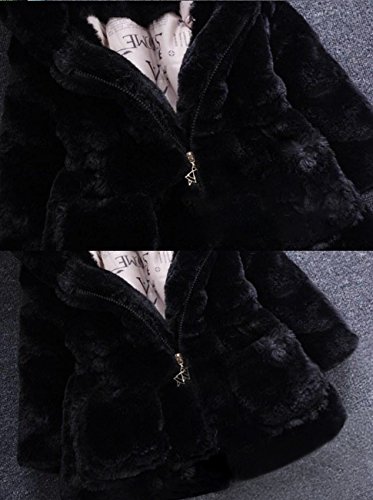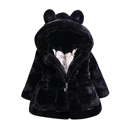 GALAXYONEうさぎ耳付き コート 女の子 新生児 ロングタイプ 子供服 無地 ぬいぐるみ 長袖 ふわふわ うさぎちゃん 超目玉 ふわふわ かわいい 綿 柔らかい 帽子付き ベビー 保温 冷房 防寒対策 (110, ブラック)