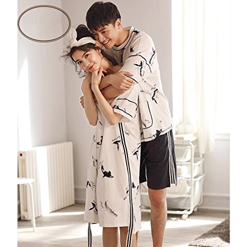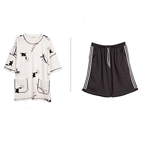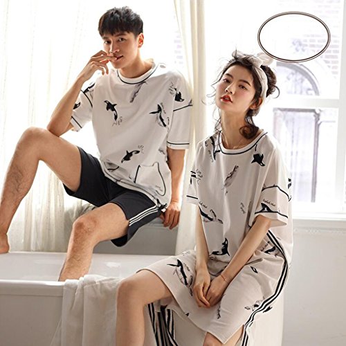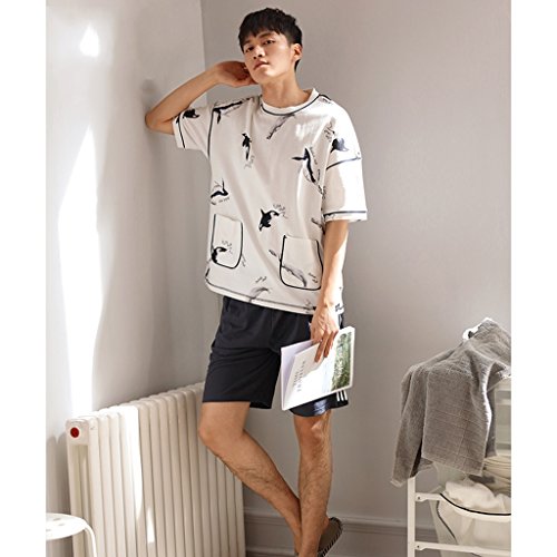 GAODUZI 夏のコットンラバーズスリープスカートファッションメンズ半袖ホームサービス韓国のルースコットンスリープスカートドレス(半袖+ショーツ) (色 : マルチカラー まるちから゜, サイズ さいず : Men-xxl)