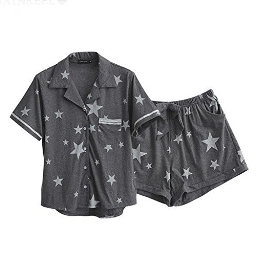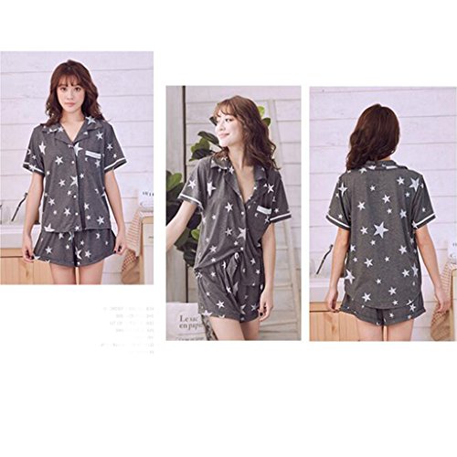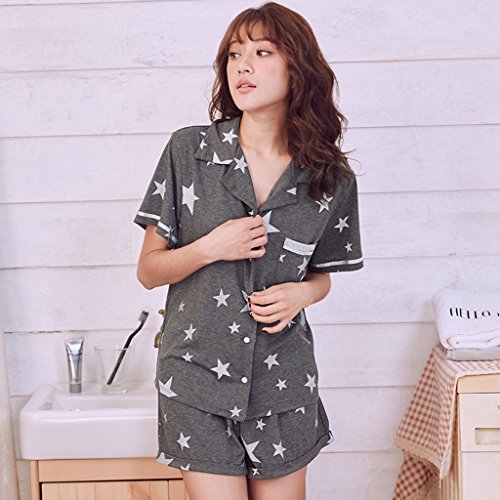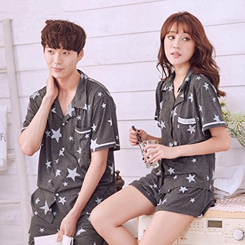 GAODUZI 夏の甘いセクシーな男性と女性の半袖パジャマカップル快適な綿の下着ホームサービススーツ(パジャマ+ショーツ) (色 : グレー, サイズ さいず : Ms-m)