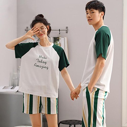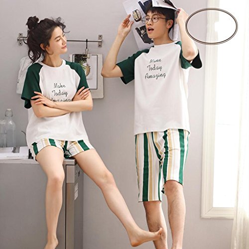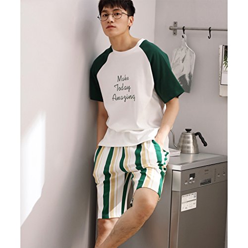 GAODUZI 夏の綿の恋人パジャマ薄い女性の夏ルーズなホームサービススポーツの男性の半袖コットンの下着(半袖+ショーツ)の韓国語版 (色 : マルチカラー まるちから゜, サイズ さいず : Men-l)