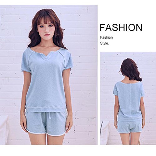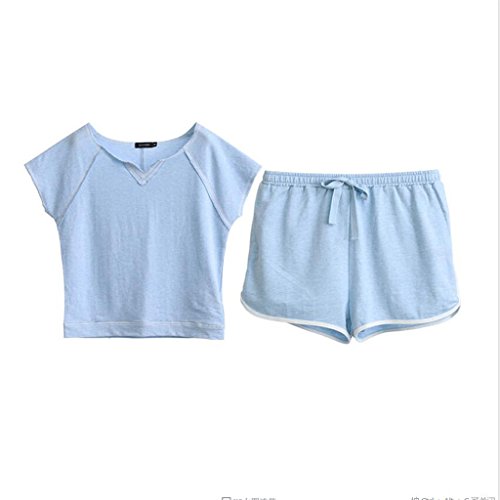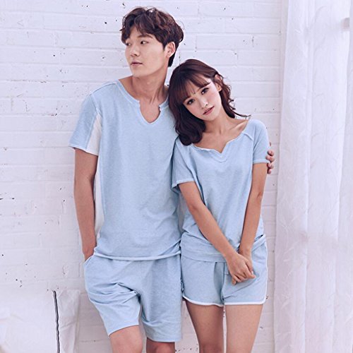 GAODUZI ニューサマーメンズレディースパジャマ半袖ショーツコットンカジュアルカップルホームサービス下着(パジャマ+ショーツ) (色 : 青, サイズ さいず : Ms-m)