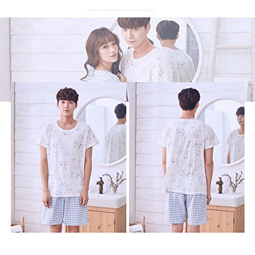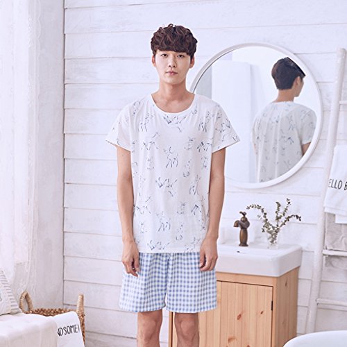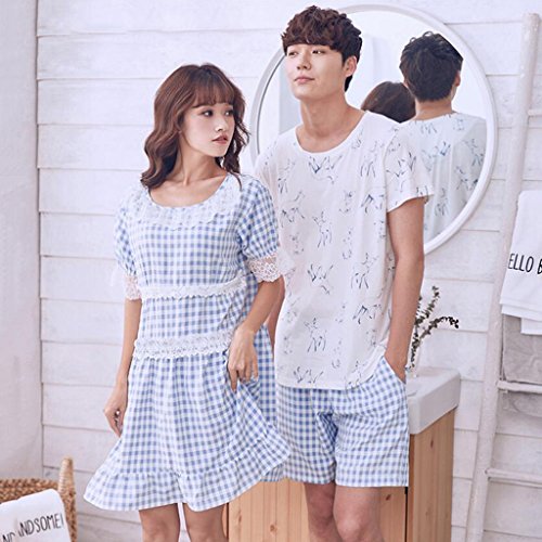 GAODUZI 夏の快適なコットンのドレスメンズとレディース半袖パジャマ格子サービススカート(パジャマ+ショーツ) (色 : マルチカラー まるちから゜, サイズ さいず : Men-l)