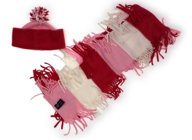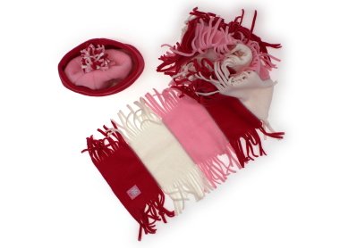 - 帽子とマフラーのセットアイテムになります。帽子のサイズ表記はS、実寸は高さ14cm、頭まわり49cmです。マフラーは幅15cm(フリンジ部分ぬきで)、長さ165cmです。若干の使用感はありますが、目立った汚れのない良品です。