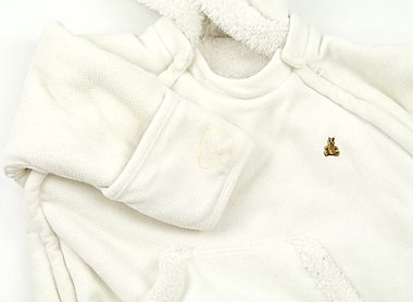 暖かい生地の裏地がついています。フードのクマ耳が可愛らしいです。右サイドに黒い汚れがあります。右袖に黄色いシミがあります。たくさん必要なベビーサイズ、洗い替え用にいかがでしょうか?