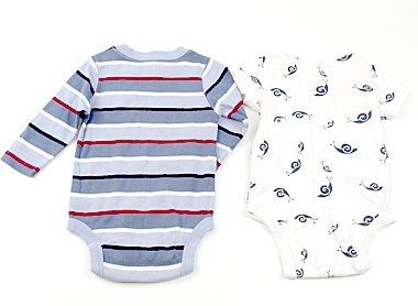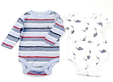 毛羽立ち・若干の変色がありますがしっかりしたカットソーでまだまだ活躍してくれそうです。おまけで同ブランドのカタツムリ柄ロンパース(前中心に黄ばみあり)つき。