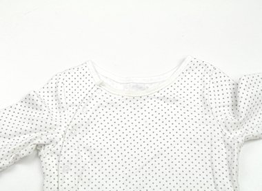 胸元と袖に黄ばみ・汚れがあります。手触りのいいカットソーです。たくさん必要なベビーサイズ、洗い替え用にいかがでしょうか?格安にて。