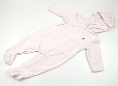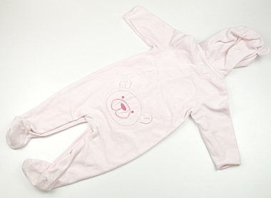 左足に茶色い汚れがあります。パイルベロア生地。おしりのクマのアップリケが可愛らしいデザインです。
