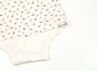 - 実際のサイズ表記は6-12mです。後身頃の右太もも履き口に薄茶色の汚れがあります。他に目立つ汚れはなく、洗い替え用にいかがでしょうか?
