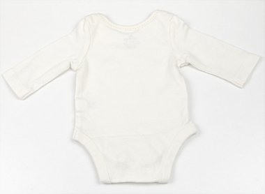 実際のサイズ表記はup to 7lbs(48cm)です。前身ごろ右下あたりに黄色い小さいシミあり。たくさん必要なベビーサイズ、洗い替え用にいかがでしょうか?