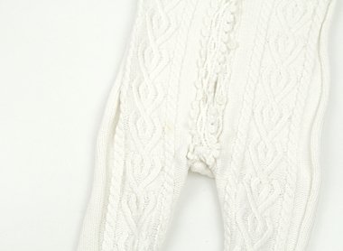 - なんともラブリーなコットンケーブルニットのオールインワン!右側の腰に薄いシミがあり、編地がやや硬くなっていますが、刺繍がとっても可愛らしく、まだまだ活躍してくれそうです。