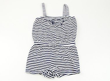 - 手触りのいいカットソー生地のコンビネゾンです。うっすら全体に毛羽立ちがありますが目立つシミなどはなく爽やかで可愛いデザインです。