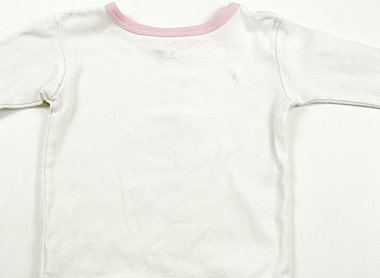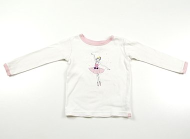 全体に毛羽立ちがあります。若干黒ずみもありますが普段着としていかがでしょうか。バレリーナのイラストがキュート。