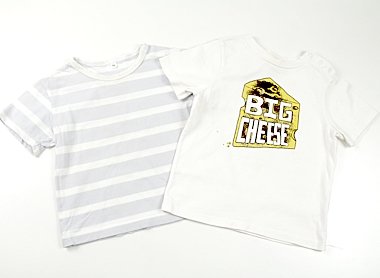 - 白のTシャツがGAP。毛羽立ちがあり、衿ぐり・お腹のあたりにシミがあります。MUJIのボーダーTシャツ(衿ぐり変色・毛羽立ちあり)おまけでどうぞ。お得な2枚セットです。洗い替えにいかがでしょうか?