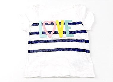 - LOVEの文字がぷくっとしたデザイン。Lの上の方に黒い汚れが少しあります。外遊びや洗い替え用にいかがでしょうか?