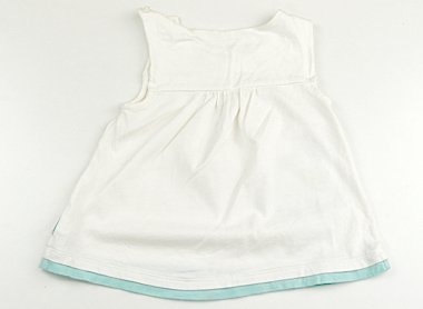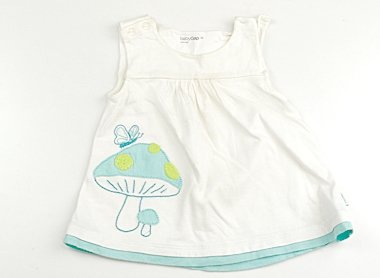 柔らかいカットソーです。首周りからお腹のあたりにかけて広範囲で変色があります。キノコのアップリケと刺繍がキュート。洗い替え用にいかがでしょう。格安にて。