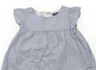 洗濯表記タグが切れています。実際のサイズ表記は18-24monthsです。衿ぐりや前身ごろに黄色いシミがあります。裏地があり二枚仕立てです。裾の刺繍が可愛い商品です。