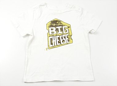 - ビッグ・チーズのポップなプリント柄が印象的。毛羽立ち・型崩れはありますがしっかりしたTシャツです。まだまだ活躍してくれそうです。(記名あり)