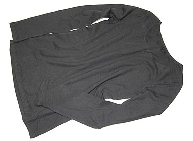 色落ち感と白いほこりが付いています。まだまだ普段着として活躍してくれそうです。丈が長めのカットソーです。