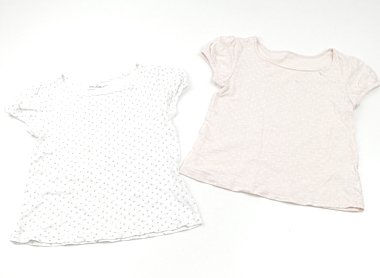 柔らかい薄手カットソー。色違いでお得な2枚セットです。洗い替えにいかがでしょうか?どちらも前見頃にシミがありますがまだまだ普段着として活躍してくれそうです。