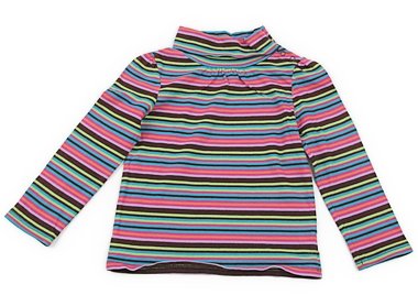 左肩にスナップがあります。カラフルなボーダー柄がとてもお洒落です。目立った汚れのない良品です。