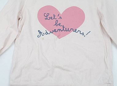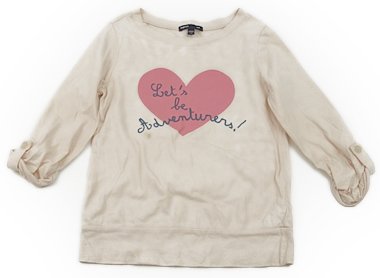 胸元や、ハートの下から裾にかけて点々と汚れがありますが手ざわりのいいカットソーです。普段着としていかがでしょうか。工夫次第でまだまだ活躍してくれそうです。