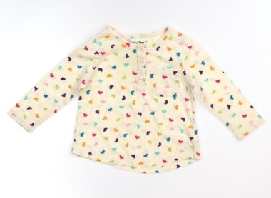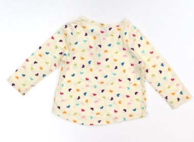 前身ごろに薄い黄色いシミと茶色い小さな汚れがあります。洗い替え用にいかがでしょうか?