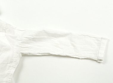 ごく薄手でさらっとしたかぶりブラウスです。袖や前身頃に点々と黄ばみがあり、ピンタックの縫い目がややほつれていますがまだまだ普段着として活躍してくれそうです。