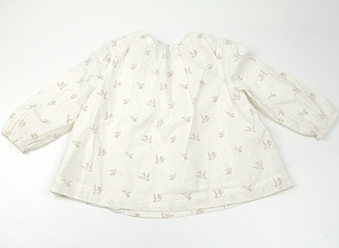 カットソー生地の裏地がついています。左袖に茶色いシミあり。前裾あたりに黄色いシミあり。外遊びや洗い替え用にいかがでしょうか?