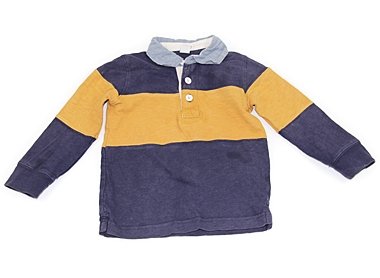 ラガーシャツ風のデザインです。素材タグが切られています。全体的に使用感がありますが、外遊びや洗い替え用にいかがでしょうか?