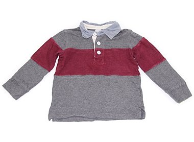 ラガーシャツ風のデザインです。素材タグが切られています。全体的に使用感がありますが、外遊びや洗い替え用にいかがでしょうか?