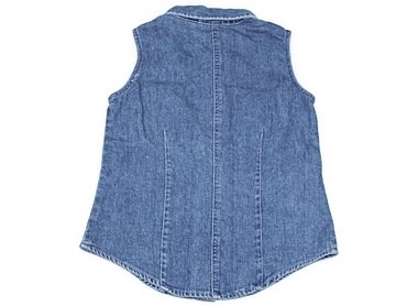 - 実際のサイズ表記はXSです。素材ならではの色落ち感があり、左ポケット横にスレ感、第三釦上に薄オレンジ色の汚れがあります。まだまだ普段着として活躍してくれそうです。
