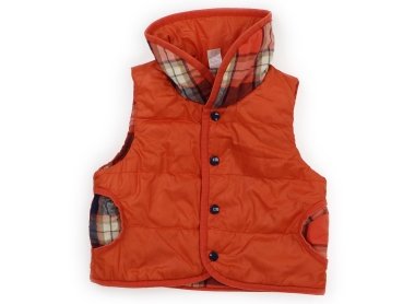 リバーシブルで着られます。ポリ地側と綿地側で、やや中綿入り。ボタンはスナップです。