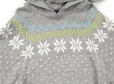 実際のサイズ表示はMです。ポンチョ風のニットです。右脇あたりに薄い茶色いシミがあります。外遊び用にいかがでしょうか?