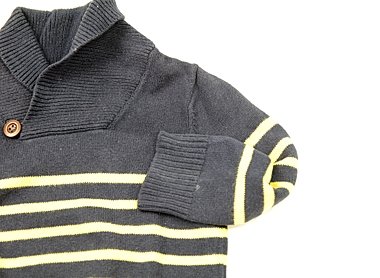- 全体的な色落ちと毛羽立ちがあります。色落ちは特に右肩部分と袖に見られます。ボタンの色落ちと左袖に白い付着物があります。外遊び用としていかがでしょうか?