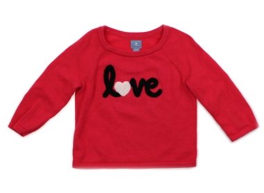 胸元のloveがもこもこでかわいいです。100%コットンニット。目立った汚れはありませんが全体的に着場立ちがあります。