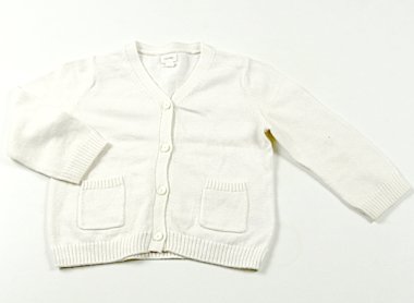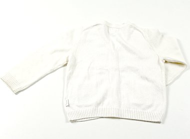 綿100%のシンプルなカーディガン。袖口などに薄っすらとシミがありますが目立った汚れのない良品です。