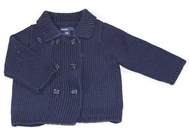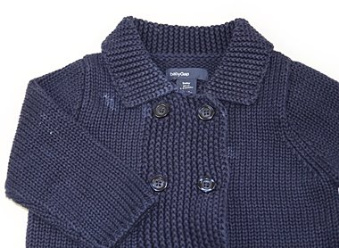 実際のサイズ表記は0-6monthsです。ざっくりしたニットカーディガン。一部、白っぽい汚れがありますがまだまだ普段着として活躍してくれそうです。