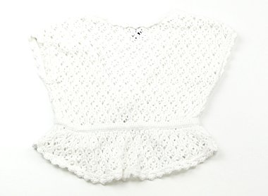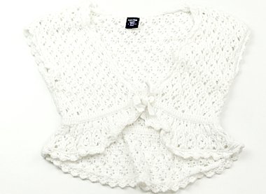 カーディガンに分類しましたがフレンチスリーブでベストふうにも着られます。手編みふうの素朴な編地。目立った汚れのない良品です。