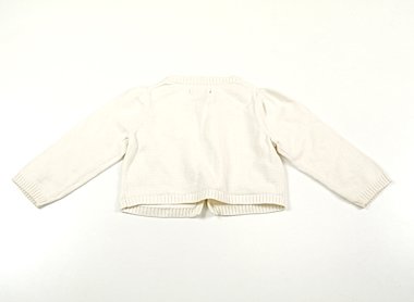 綿100%の薄手ニットカーディガン。前見頃に点々とシミがあります。普段着としていかがでしょうか。